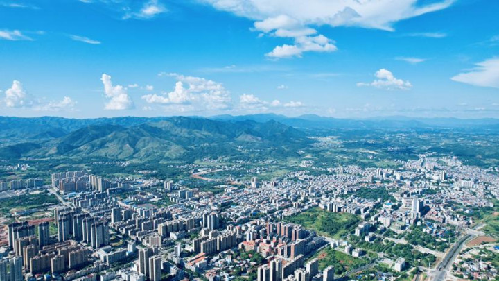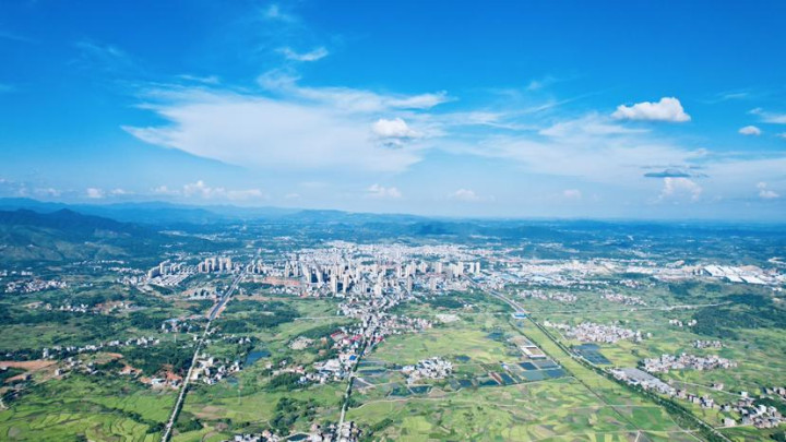 盛夏时节,新田县境内,天空湛蓝如镜,处处展现生态之美。黄新摄